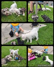 Asher-white M- DOB 2/10/25. This goofy guy loves to have a good time and loves to be out on the trail. He has no issues running with the big dogs. When done right, this guy is supper easy to train. He has the cotton coat.