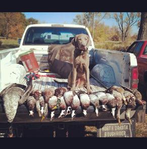 It has been just over three years since I contacted you about one of your puppies. I arranged to buy my puppy from you in March of 2010. His name is Taos and he was a puppy from Marlie and Benelle. I just wanted to express how amazing this dog is. He has a personality that people are constantly commenting on and is very well mannered, although excited when familiar faces come by. He rarely barks but does have a grumbling howl that he uses to let you know he has a treat coming or that he is very disappointed that he can not go Deer hunting. He almost seems to talk to you. He is fantastic in the field and I swear he jumps 6 feet in the air. This insane vertical allows him to clear the tall cane grass in the sloughs of North Dakota and keep on eye on you so as not to get too far ahead while flushing. He loves to swim and cruises through the water when retrieving. He is an amazing dog in many ways, as a hunting companion, and a friend, and as a family member. He gets along very well with other dogs even when sharing space such during pheasant hunting when we have 7-9 dogs at the camp. He is very vocal when he needs to be such as if I am distracted and he needs to get out to go to the bathroom or something. He is loving and very obedient, sometimes with a little attitude but he always listens. I can't thank you enough. I am attaching some pictures and I hope they come through alright. Again, thank you very much for this amazing addition to my family. I hope this finds you well and I am able to contact you in the future for a another puppy.